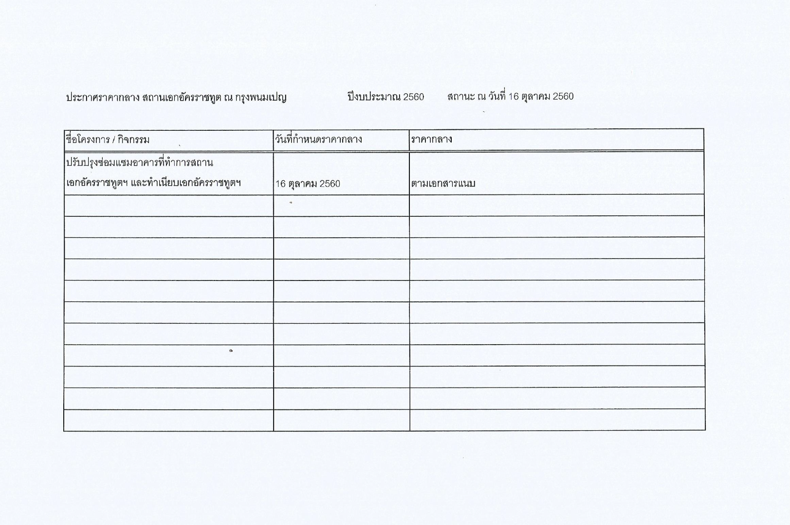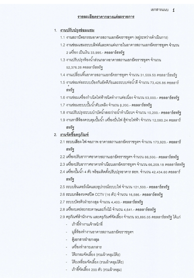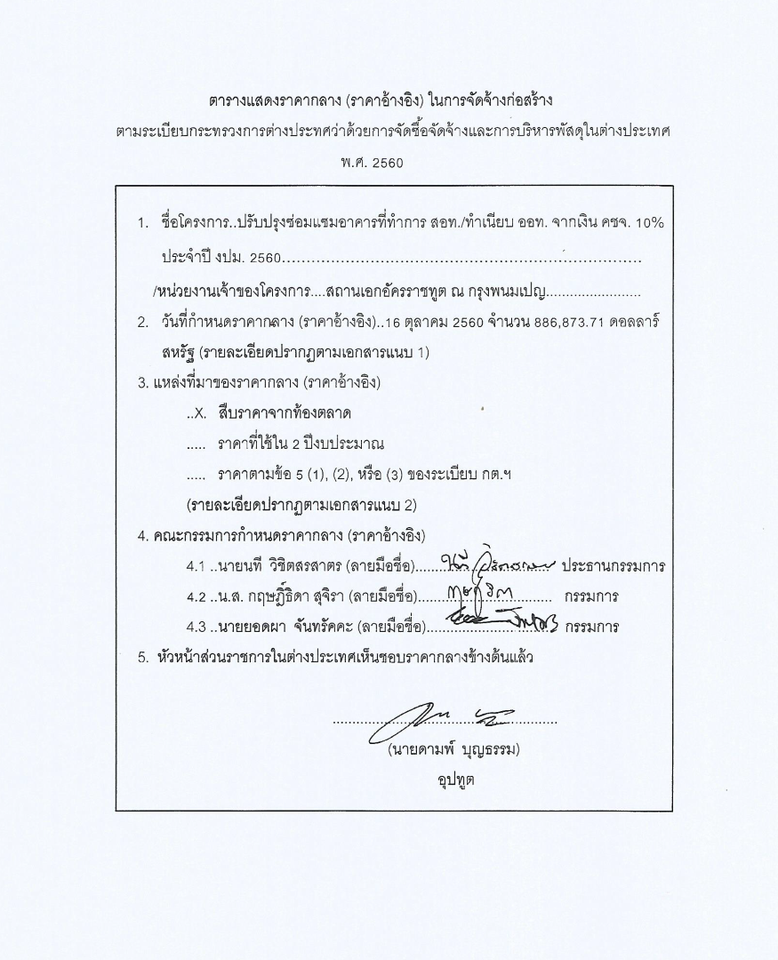 ประกาศราคากลาง เรื่อง โครงการปรับปรุงซ่อมแซมอาคารที่ทำการสถานเอกอัครราชทูต และทำเนียบเอกอัครราชทูต